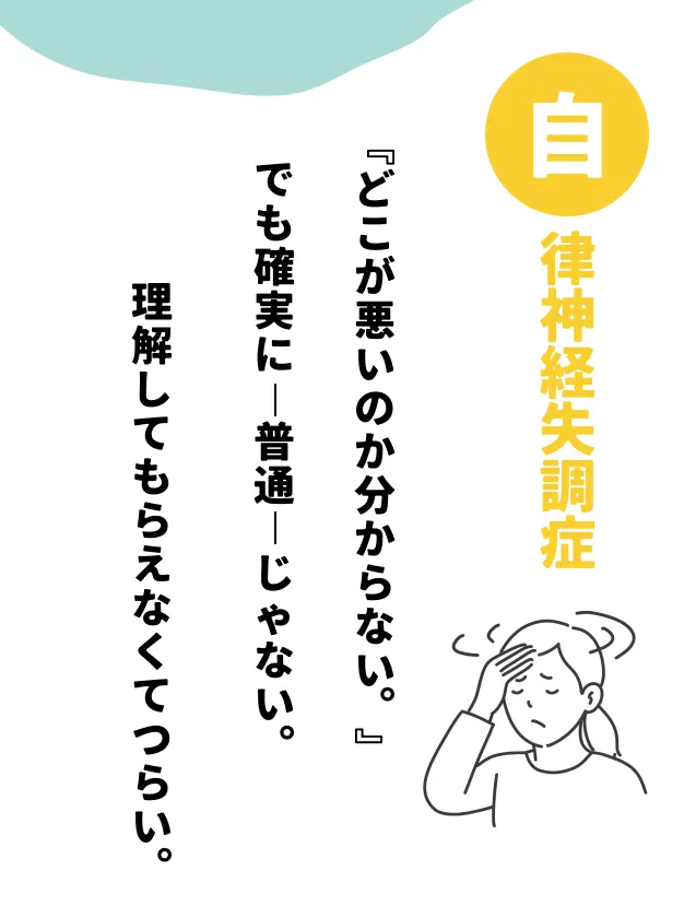 動悸・息苦しさ・めまい・不眠・胃腸の不調・慢性的な疲労感・不安感など、病院の検査では異常が見つからないのに「なんとなくつらい」と感じる状態は、自律神経の乱れが背景にあることが多いです。