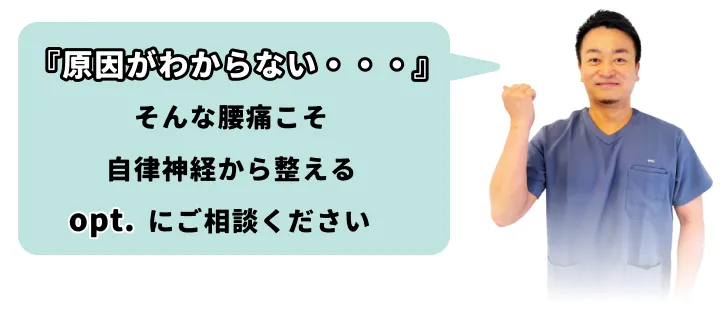 opt.では自律神経整体によって腰痛の原因を特定し、ストレス性腰痛を改善していきます。